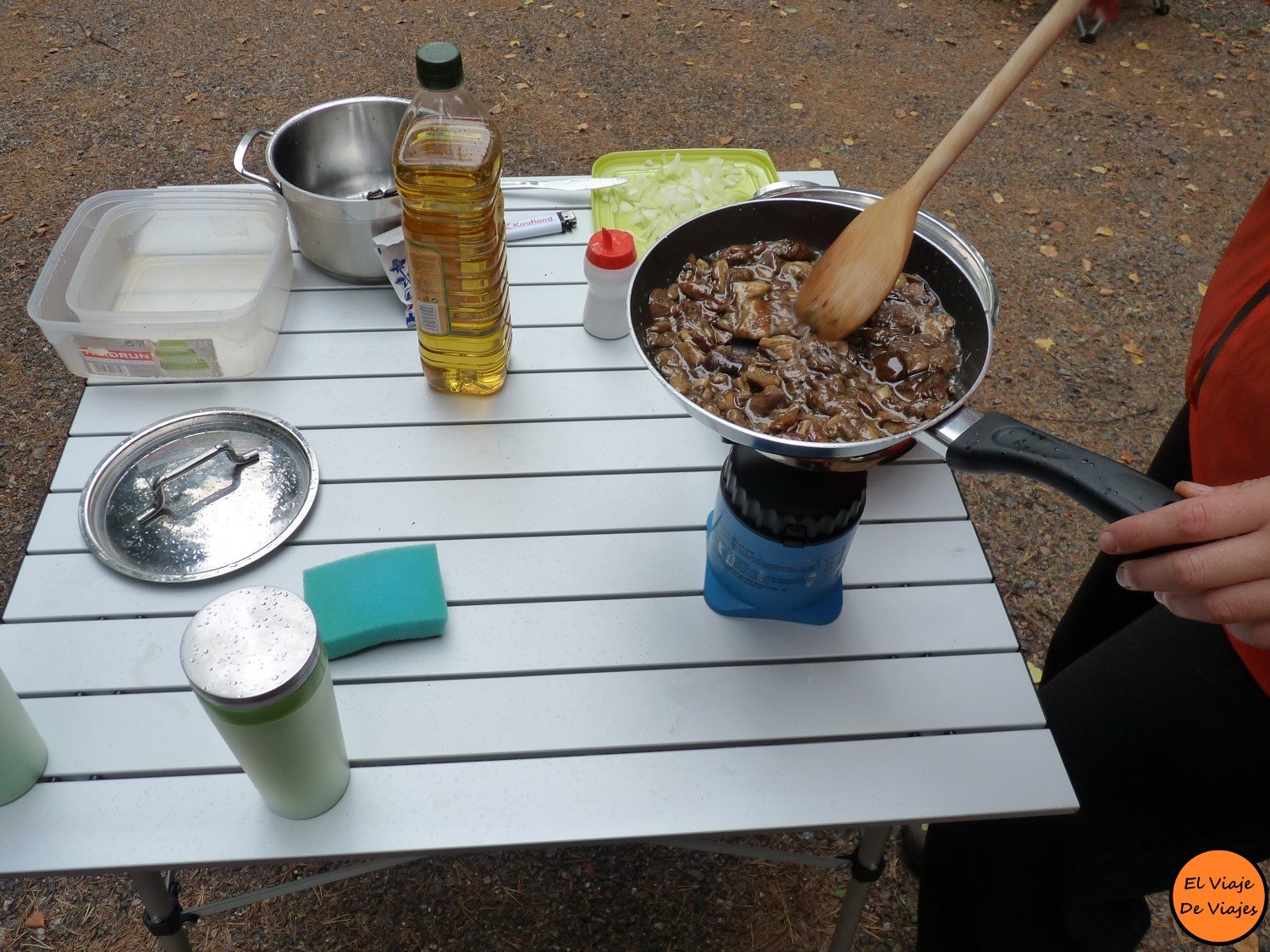 Nuestro coche no es todo un terreno, pero a veces lo hemos metido por caminos complicados. Aparcamos cerca de un lago y montamos la tienda de campaña. Pablo ha ido a descansar al muelle y meditar en la naturaleza. Para la cena decidí cocinar las setas que hemos recogido, después de comprobar su calidad. ¿Creéis que hay mejor manera de acabar el día en Finlandia que relajarse en una sauna finlandesa y además refrescarse saltando al lago?