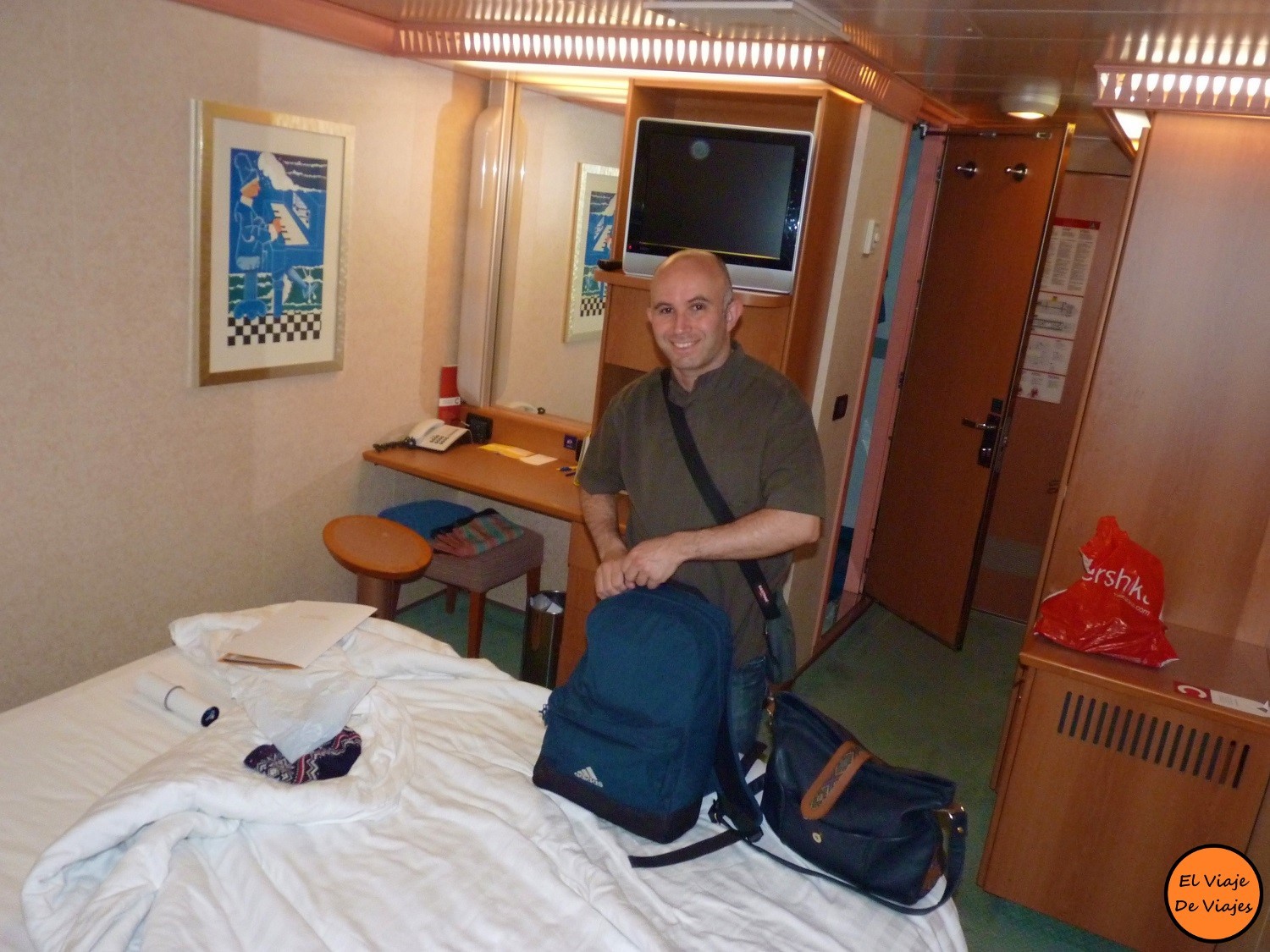 Al día siguiente llegamos al puerto de Barcelona. Antes de abandonar el barco podréis dejar alguna propina a las personas que atendieron y limpiaron vuestro camarote cada día. Normalmente es la misma persona quien se asigna a tu camarote, por lo tanto es alguien con quien tendréis un cierto trato cercano. La propina es opcional, pero pensamos que es una muestra de cortesía hacia las personas que han dedicado su tiempo en hacer que nuestro viaje sea más placentero y cómodo. Cada encargado o encargada que tengáis para vuestro camarote tendrá algún detalle para vosotros, a continuación os enseñamos el nuestro 🙂 .