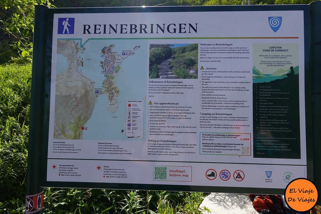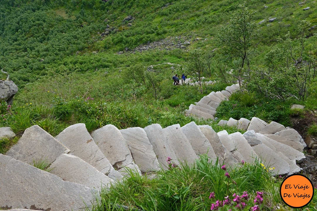 Esta es una de las rutas de senderismo más conocida de las islas Lofoten de Noruega. Se trata de una ruta de 1566 escalones que alcanza una altura de 448 metros sobre el nivel del mar. En la cima se puede disfrutar de unas vistas impresionantes de Reine. Para recorrer esta ruta tendrás que desplazarte hasta la población de Reine. Allí encontrarás varios aparcamientos. Desde la población de reine tienes que caminar más o menos 10 minutos hasta llegar al principio de la ruta.