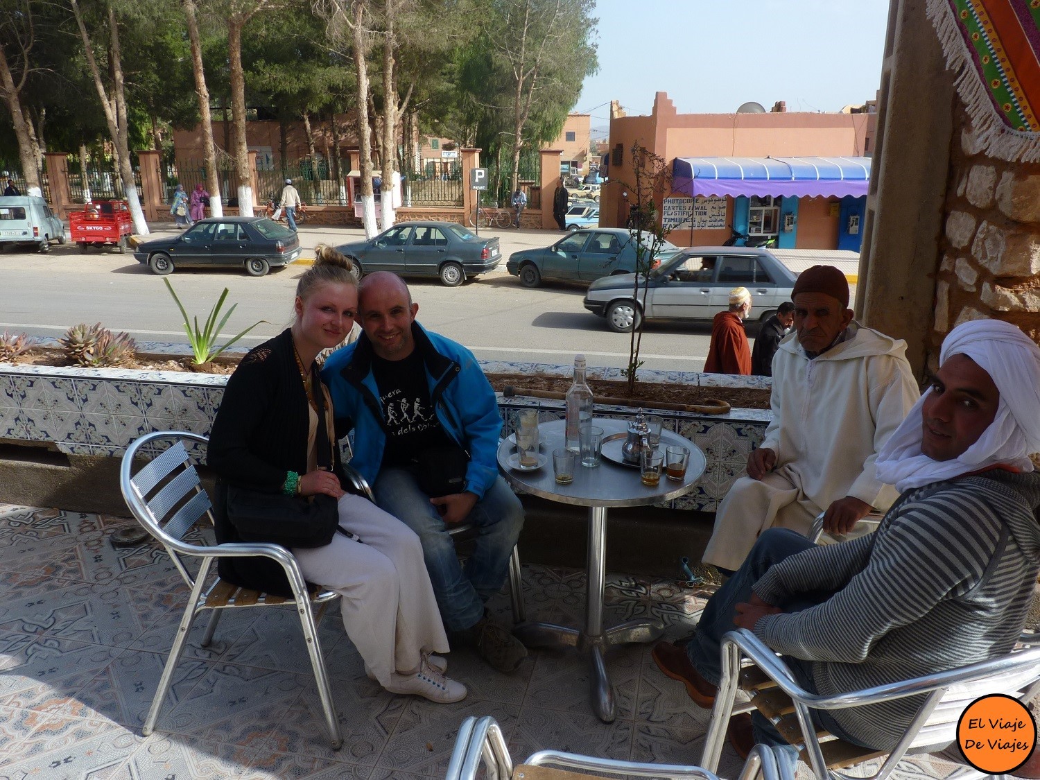 Mientras Romana está en el baño, Pablo fue a pagar los cafés con leche que nos habíamos tomado. En la barra del bar habían varios camareros y muy poco trabajo, a pesar de ello se podía apreciar la tranquilidad con la que todo se mueve, siempre hay tiempo. Un hombre marroquí nos dijo una frase que en ese momento no pudimos entender: La prisa mata. Después de varios días en Marruecos esa frase fue tomando sentido. La gente en Marruecos piensa realmente que las prisas y el estrés no es bueno para la salud.
